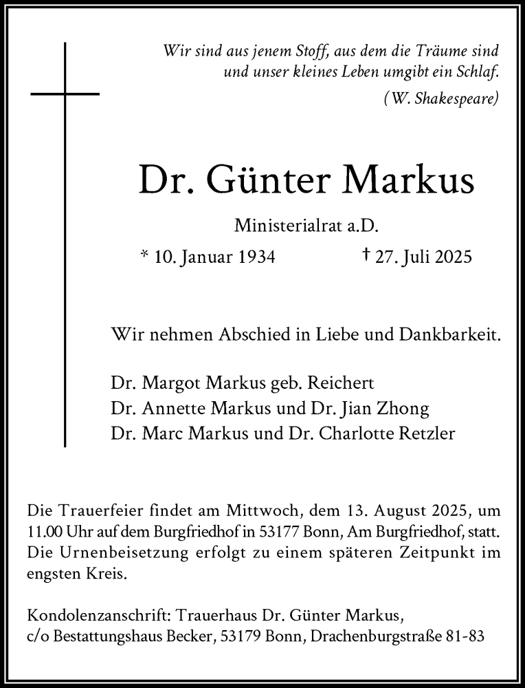 Hier finden Sie alle Traueranzeigen aus der Zeitung, die bisher für Günter Markus erschienen sind. Weitere Traueranzeigen, die in der Zeitung erscheinen, werden hier ebenfalls aufgelistet
