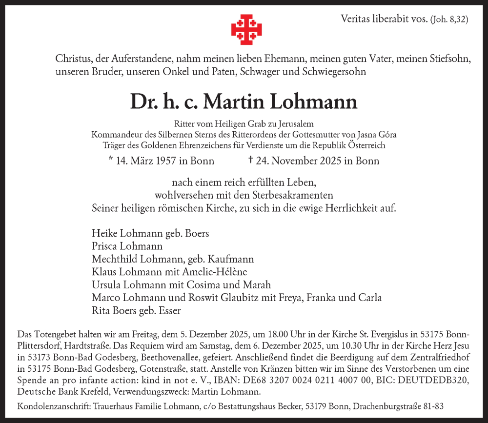Hier finden Sie alle Traueranzeigen aus der Zeitung, die bisher für Martin Lohmann erschienen sind. Weitere Traueranzeigen, die in der Zeitung erscheinen, werden hier ebenfalls aufgelistet